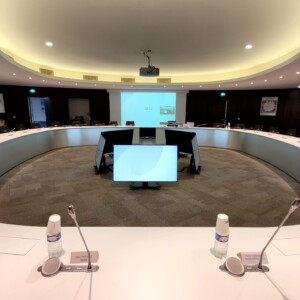 Pensée pour les échanges collaboratifs à haut niveau, cette salle offre une intégration audiovisuelle avancée dans un environnement immersif :